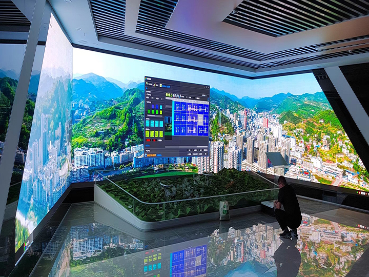 型號:P1.5 環境:室內 面積:120㎡ 地點:南江 形狀:三折沉浸式